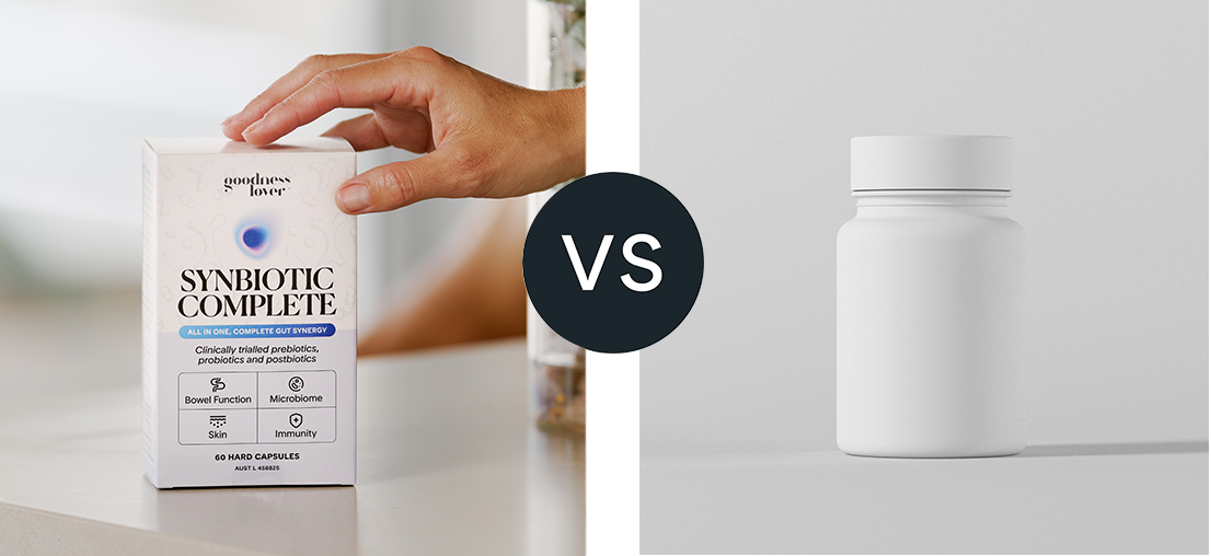 Synbiotic Complete is your ultimate 3-in-1 gut health solution. This premium triple-action formula combines prebiotics, probiotics, and postbiotics into one powerful, synergistic blend to support optimal microbiome balance and whole body, head-to-toe health.