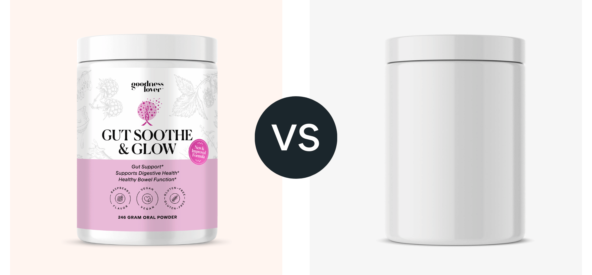 Experience a fresh new flavor you’ll actually crave. After extensive experimentation and taste-testing, Gut Soothe & Glow now features a refreshingly light raspberry–mixed berry profile that’s delicious in water, smoothies, or tea.
